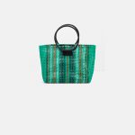 - Un sac rond mélangeant cuir et raphia. L’un des must-have de la saison. Il apporte une touche de glamour et de sophistication.