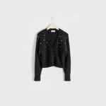 - Des boucles d’oreilles pendantes. Le décolleté en V du pull nous autorise à opter pour un modèle de boucles pendentifs. Elles apportent une touche de sophistication au look.