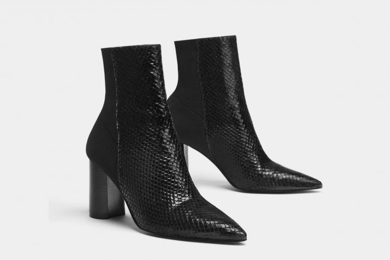 Tout est dit : si vous avez envie d’une nouvelle paire de bottines, ce modèle de l’Espagnol Uterqüe est celui qu’il vous faut. Noires, en cuir, avec un motif imitation serpent très tendance : elles donneront chic et élégance à vos tenues, tout en respectant vos petits pieds fragiles.