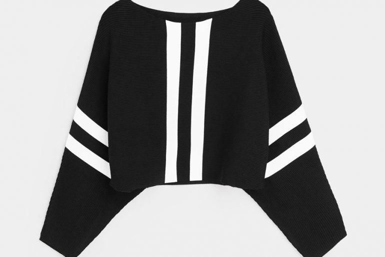 Parmi les tendances de ce printemps été : les motifs géométriques qui prennent d’assaut vêtements, sacs et bijoux. Aujourd’hui, focus sur ce pull court de chez l’espagnol Uterqüe. Blanc et noir, il se fond aussi bien dans un look de week-end chic décontracté que dans une tenue de jour en mode working girl.