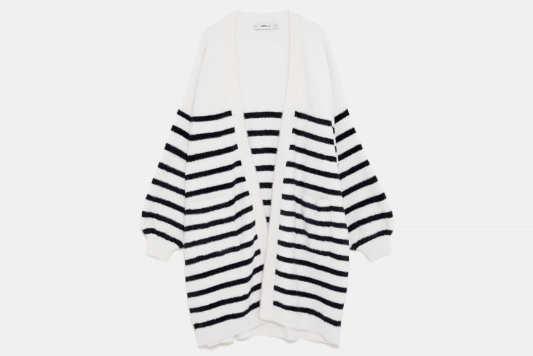 En ce lundi matin, jetons notre dévolu sur un gilet Zara rayé, en fausse fourrure. L’archétype de la pièce doudou chic à porter en semaine ou le week-end.