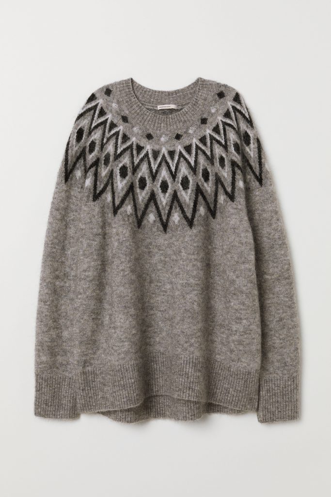 Oui, je sais : une irrépressible envie de vous lover dans ce pull H&M un rien régressif vient de vous envahir. Bienvenue au club. Les coupables : sa laine mélangée ultra-douilletteet son motif réconfortant (oui, il est fort probable que vous l’ayez déjà arboré dans votre tendre enfance). La femme que vous êtes aujourd’hui y voit également une pièce effortless, confortable, au top de la tendance. Quand, en plus, son prix descend sous la barre des 45€ grâce aux tant désirées soldes d’hiver, on craque, forcément.